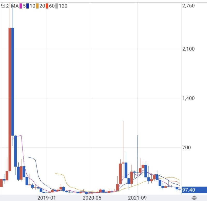 22년에는 별다른 상승없이 계속 떨어지기만 하여 22년 12월 79원까지 떨어진후 현재 97원까지 상승하였습니다.