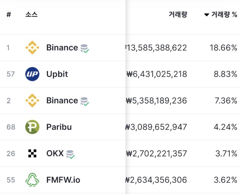 현재 거래량도 다양한 거래소에서 균등한 수준을 보이고 있는것도 참조 부탁드립니다.