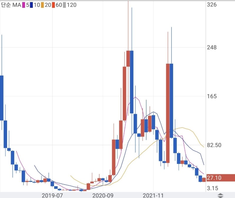 하지만 21년말부터 시작된 전체시장 하락세에 질리카도 22년 3월 50원대가 붕괴가 되었는데 3월말 새로운 XR서비스인 메타폴리스 런칭 소식으로 3월말 250원까지 급등을 하였습니다.