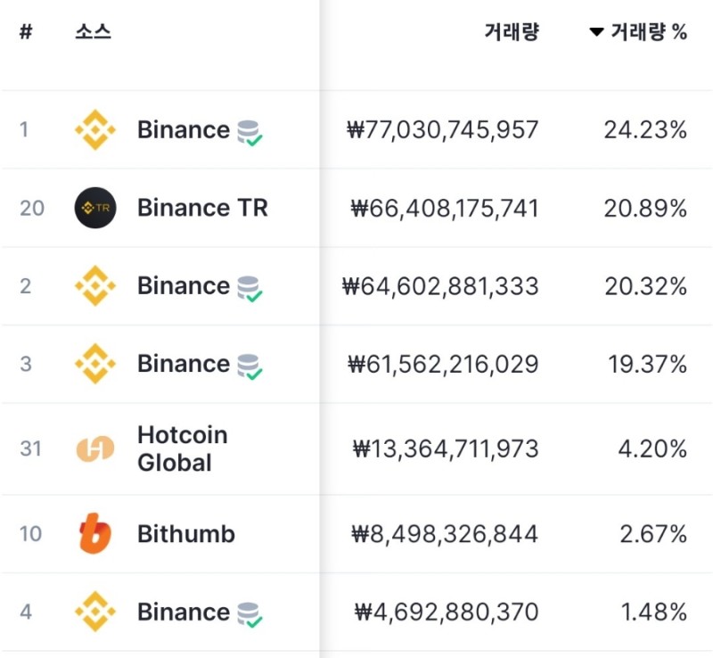 아쉬운점은 분산되었던 거래량이 1년만에 바이낸스로 다 돌아왔다는점입니다.