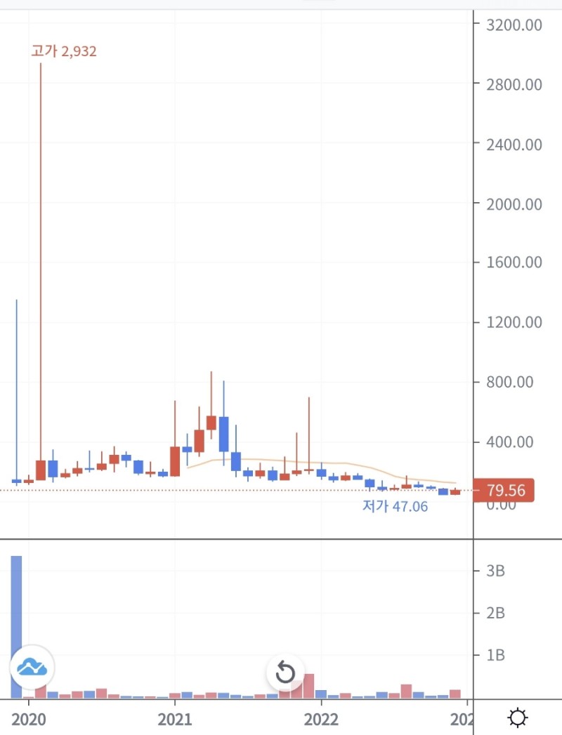 21년가상자산 대폭등시기에 800원대까지 올랐지만 다시 100원~300원대로 하락된 시세를 유지하였습니다.